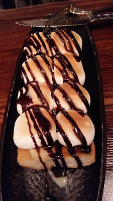 還有甜品出場,法式燒綿花糖朱古力厚多士,還用了香蕉片做夾心,棉花糖外脆內軟混和朱古力味,配上底下的特脆多士,不一樣的口感交替刺激着味蕾。很新穎又好吃的一款自己甜品呢!