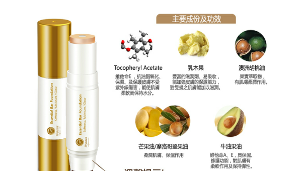粉條成份含植物精華萃取物 ,主要成份包括乳木果、 摩洛哥堅果油 、牛油果油 ,上妝同時達到保濕護膚功效~