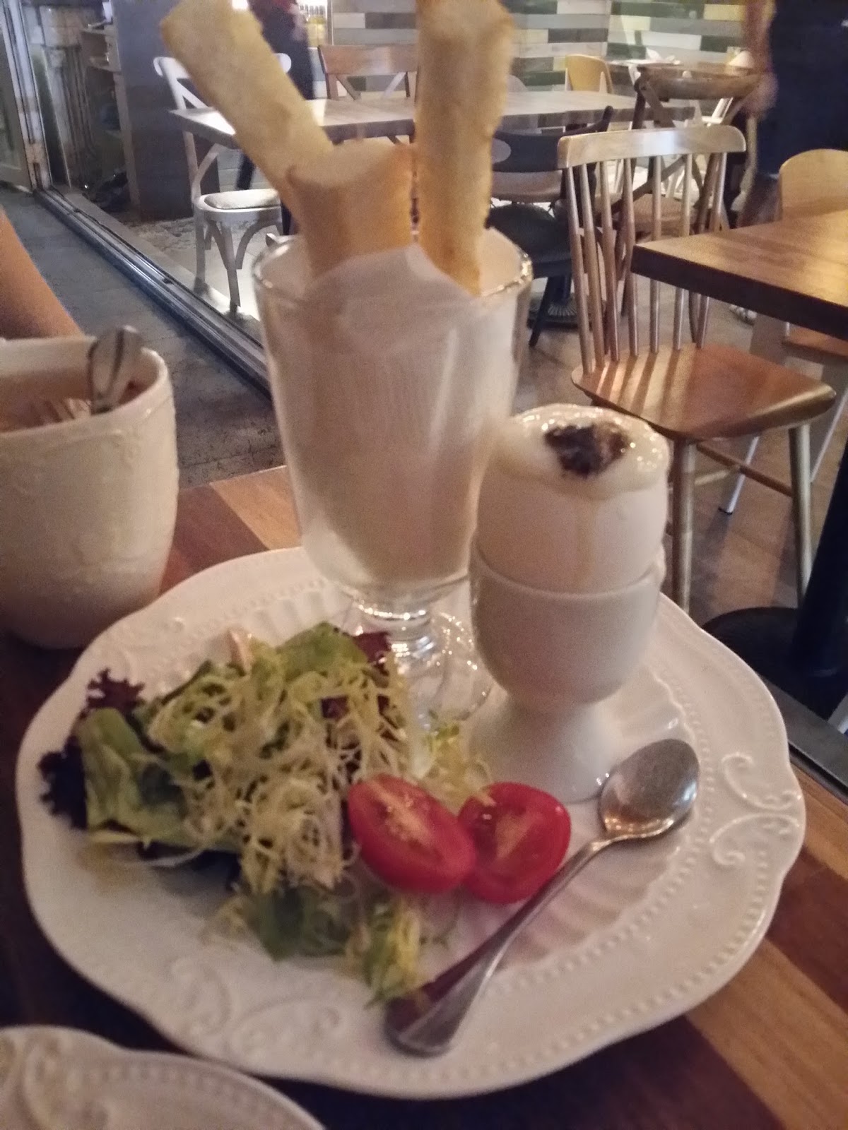 輕盈的田園沙律用的是酸甜醒胃的黑醋,健康之餘亦正好開胃開胃~當中亦有5毫子左右的果醬,和沙律都可謂很夾。