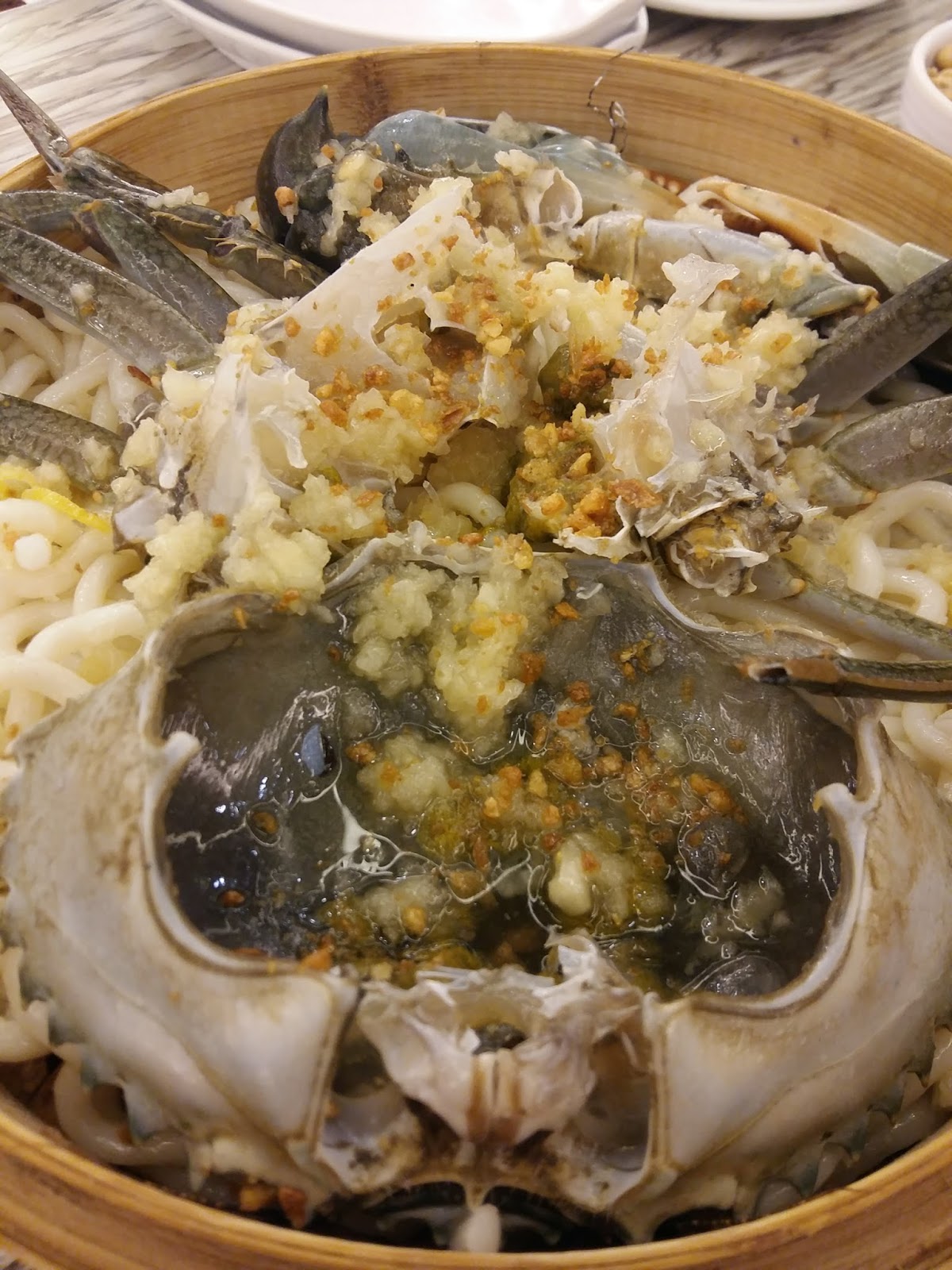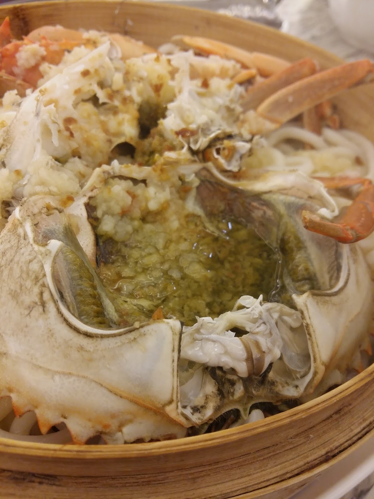 唔好以為個蒸龍好細呀! 其實係隻膏蟹大隻咋! 伸展開來的蟹手蟹腳足以覆蓋成個蒸籠。肉眼都已經望見有好多膏喺個蓋度,仲有兩隻特大蟹鉗,成個畫面好靚。