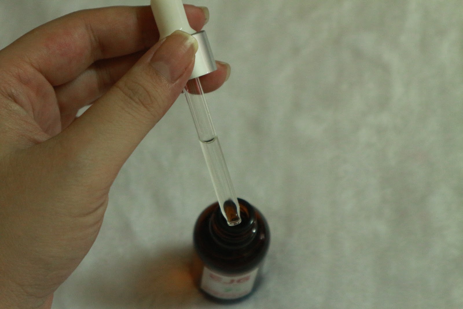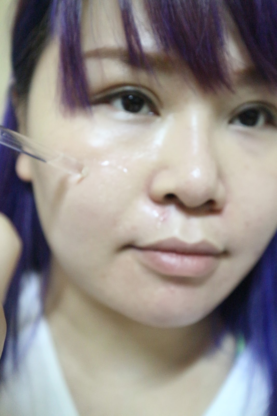 精華是透明水狀, 沒有顏色亦沒有難聞氣味, 更加沒有添加任何香料, 敏感肌膚的我表示放心使用^^ 而我選擇全面塗抹, 再輕輕打圈, 不消一會光景, 精華已經被完全吸收了!