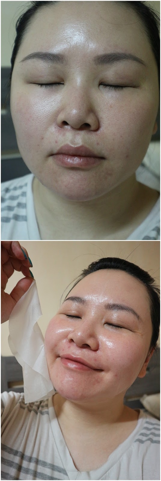 敷完之後皮膚變得白滑吹彈得破, 本身有成2 mm厚嘅啫喱面膜, 敷完之後變成紙咁薄 , 肌膚立刻有喝飽水的感覺 ,真心不騙你,就好像為我這沙漠肌注滿水分成為綠州一樣。 不單止觸感幼滑,連毛孔都收細了好多! 簡直好似由長期擘大口的飢民變返做緊閉雙唇的淑女一樣! 估唔到效果會咁明顯! 羊胎素真係無得頂!I like it!!!!