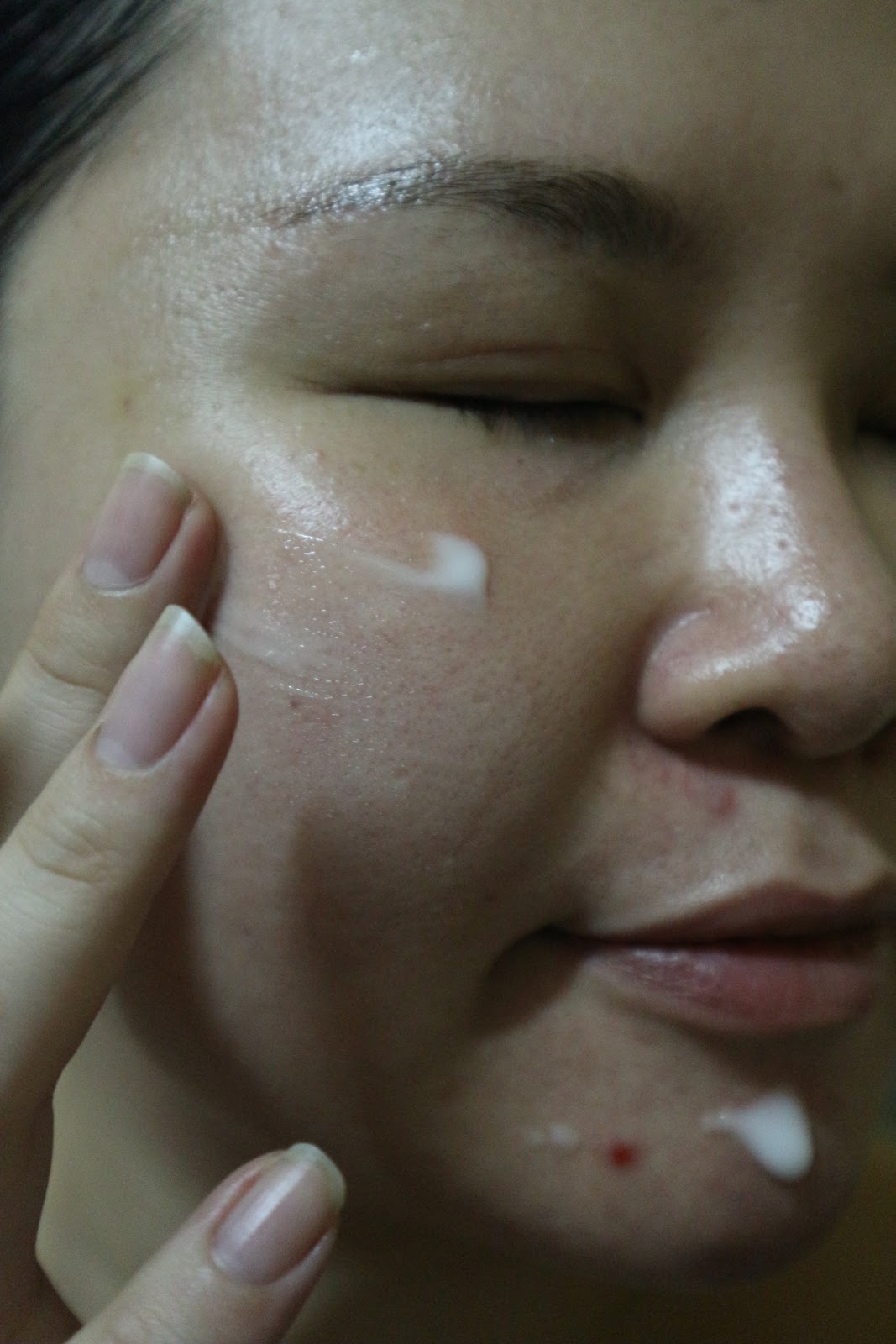 由於乳白色的面霜質地水凝,所以輕輕打圈已經能均勻地推開~同時面霜並沒有羊的味道,所以不吃羊或怕羶味的人大可放心!