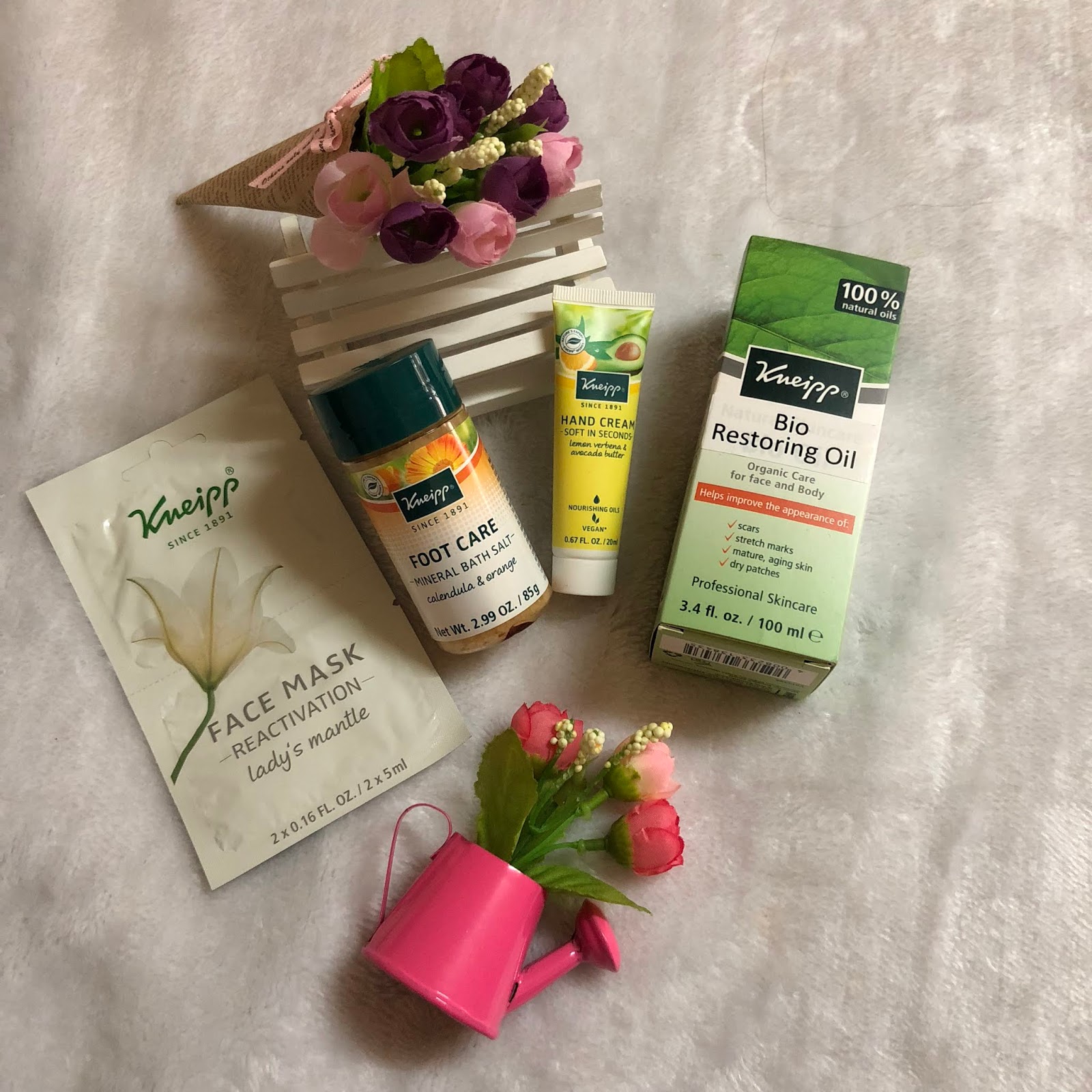 剛剛收到的Kneipp Skincare系列正好大派用場(≧∇≦) 分別有 Bio restoring oil,face mask,hand cream and mineral bath salt, 全面照顧由面仔到腳仔的需要~~