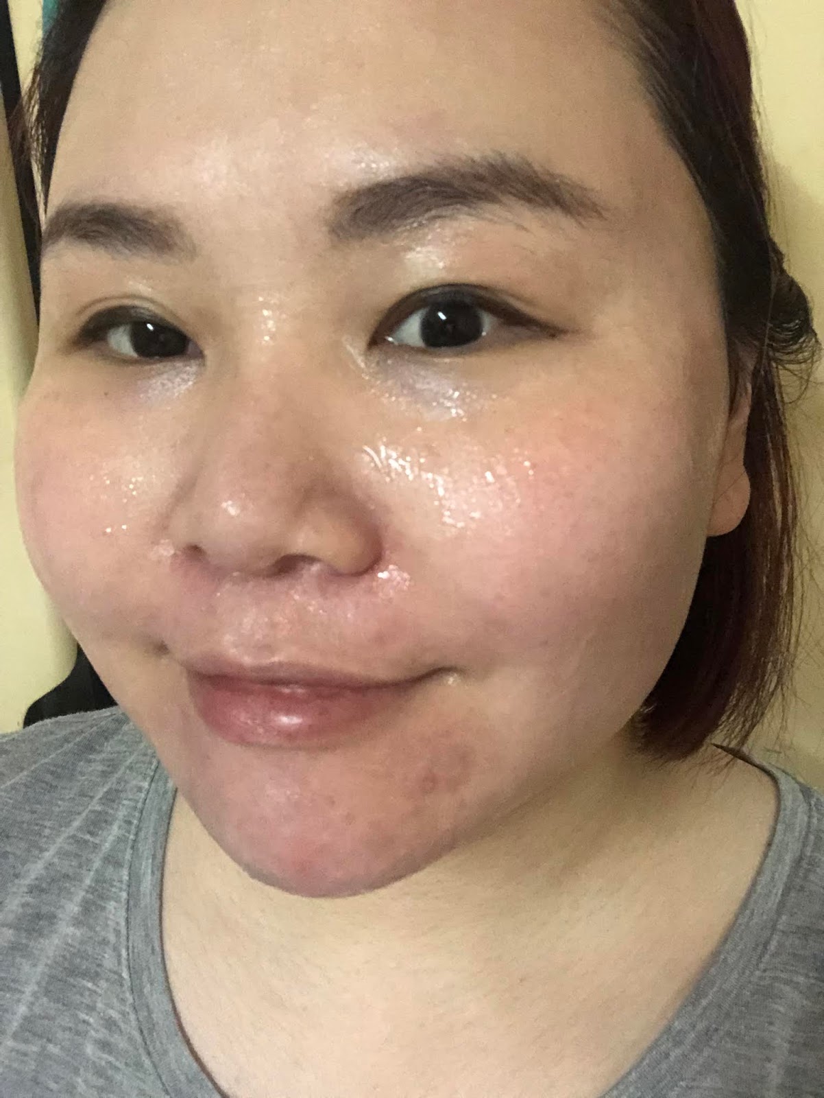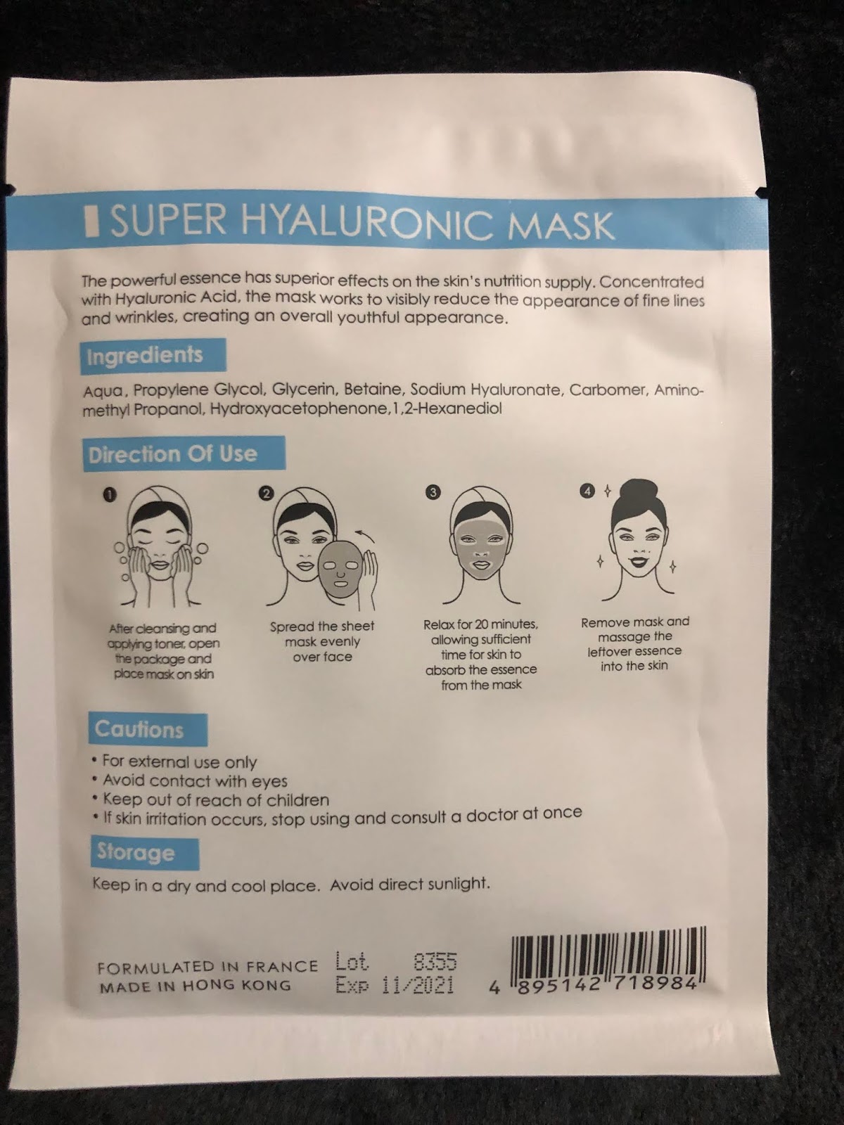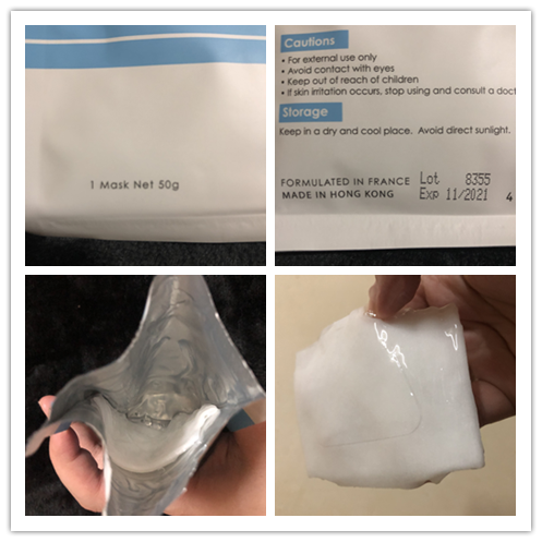 由於精華非常多, 而且是半啫喱狀, 所以我建議先將面膜袋中的精華塗抹在臉上, 再敷上面膜紙, 厚厚的透明質酸精華在面膜紙下, 被非常想呼吸的毛孔饑渴地吸啜著, 養分不停地輸送到皮膚底層!