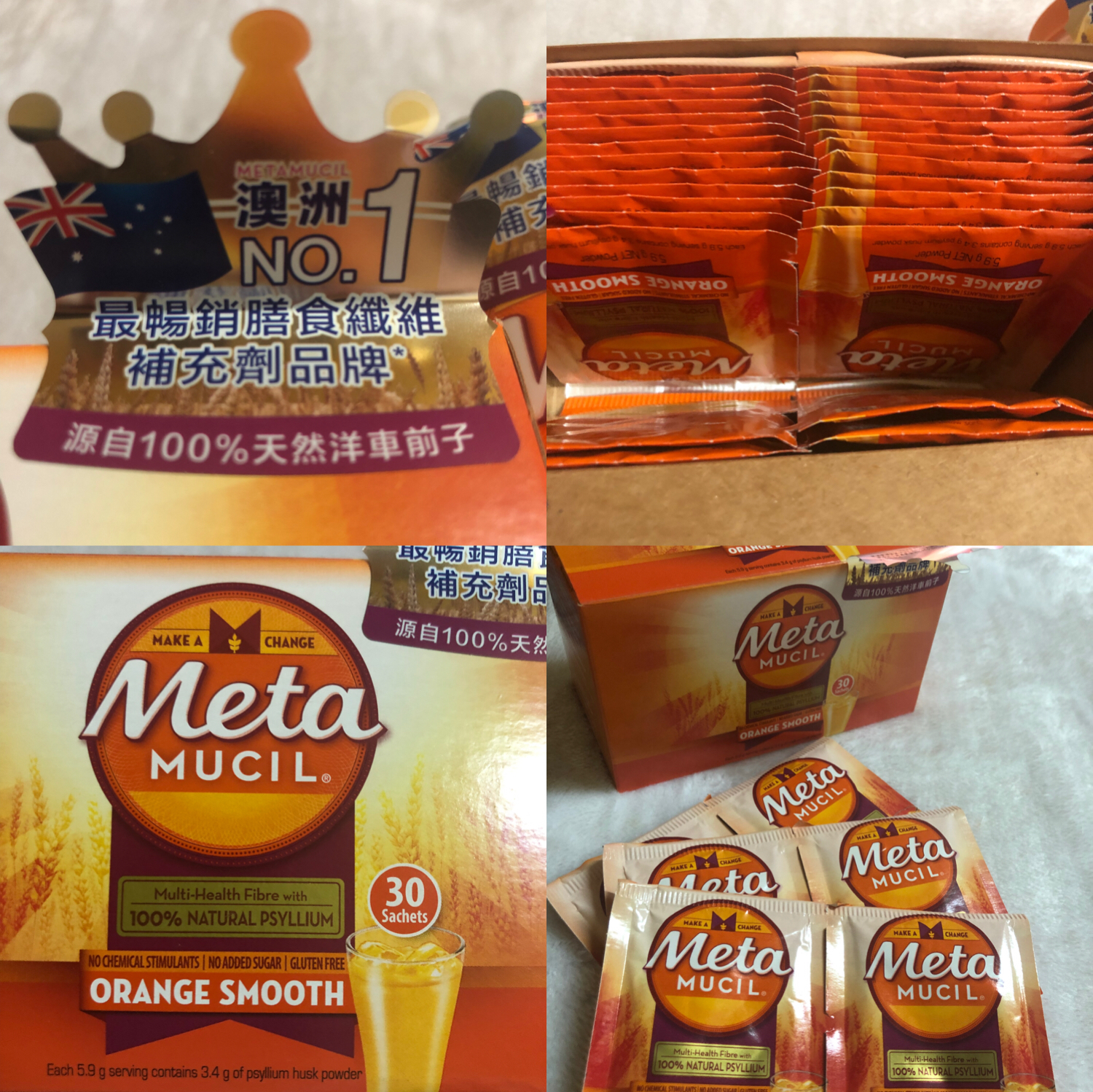 Metamucil 天然橙味橙粉膳食纖維粉安全可靠,100%採用天然成分洋車前子,是現時澳洲 No.1 最暢銷膳食纖維補充劑品牌 。